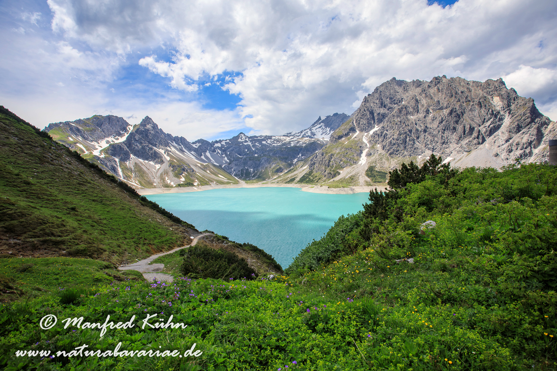 Ein weiteres schnell zu erreichendes Ziel vom Stellplatz Auhof ist das wunderschöne "Brandnertal". Teils malerisch entlang des Flusses "Alvier", durch die Ortschaft "Brand" weiter auf der L82 bis zum Ende, dem Parkplatz "Lünersee Bahn". Großzügige kostenpflichtige Parkplätze gestatten auch dem Wohnmobilfahrer ein Verbleiben. Und das lohnt sich. Von 8.00 Uhr bis 17.00 Uhr geht`s für gute 18.-- Euro (rauf und runter - geht aber auch zu Fuß) viertelstündlich rauf zum "Lüner See". Diesen Stausee kann man in ca. 2 Stunden umrunden, hat dabei an jedem Ort eine traumhafte Bergkulisse um sich und von überall tront das "Schesaplana Massiv" über allem. Gastronomie gibt es auch, kann ich aber nicht bewerten. Als Naturfotograf bewerten kann ich aber die unfassbaren Motiv die sich hier bieten, verschiedene Orchideen wie Kohlröschen, (Nigritella), Händelwurz (Gymnadenia), u.v m., Zwergprimel (Primula) und Pulsatilla - teils flächendeckend - und viele weitere Hochgebirgspflanzen - besonders erwähnenswert ist noch das Gespornte Veilchen (Viola calcarata) reichen für viele Tage Fotografie. Schneefinken an der Bergstation, Hausrotschwanz und Steinschmätzer waren an Vögeln alles was ich entdecken konnte, Säuger waren keine zu sehen, hörte aber mal ein Mankei warnen.