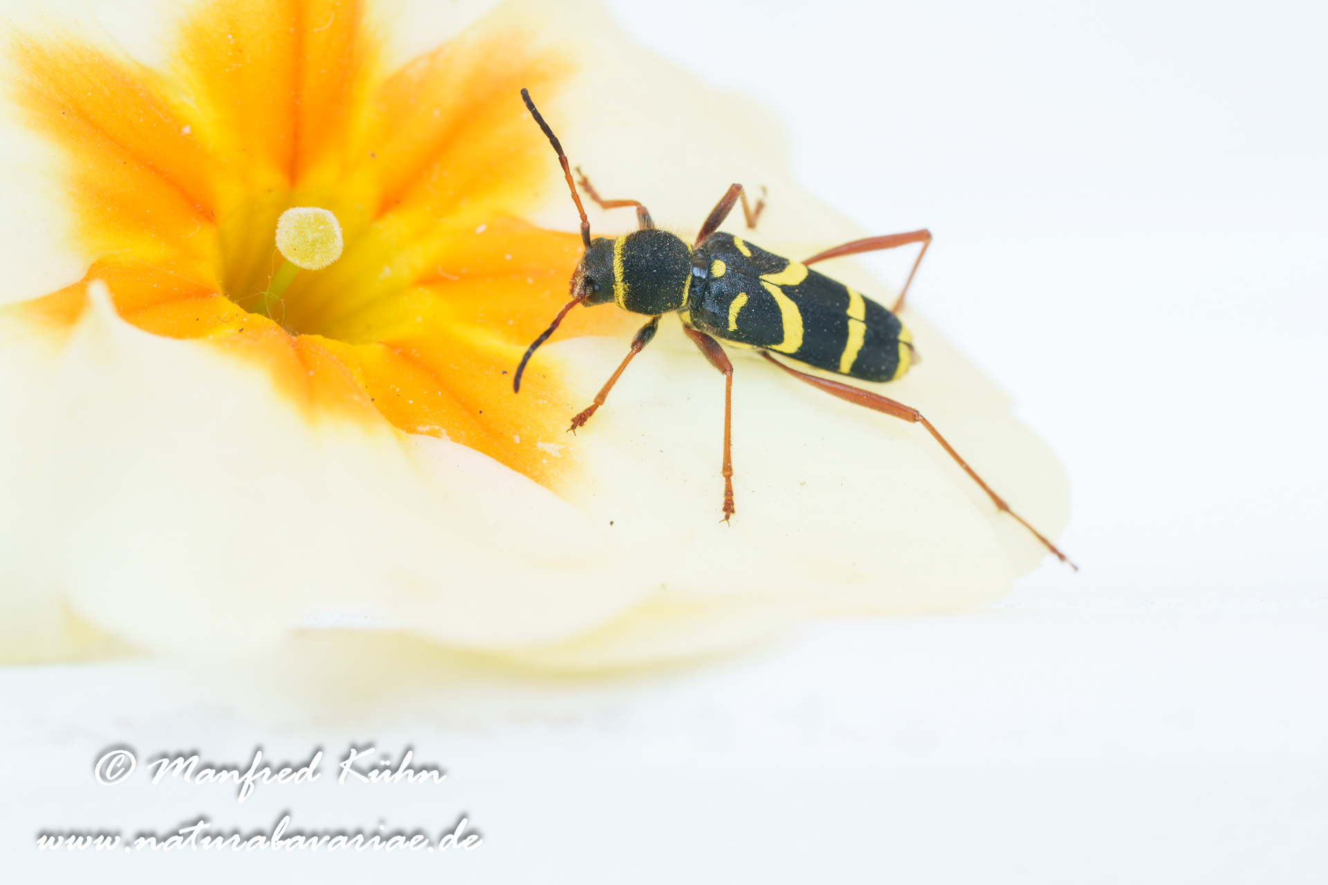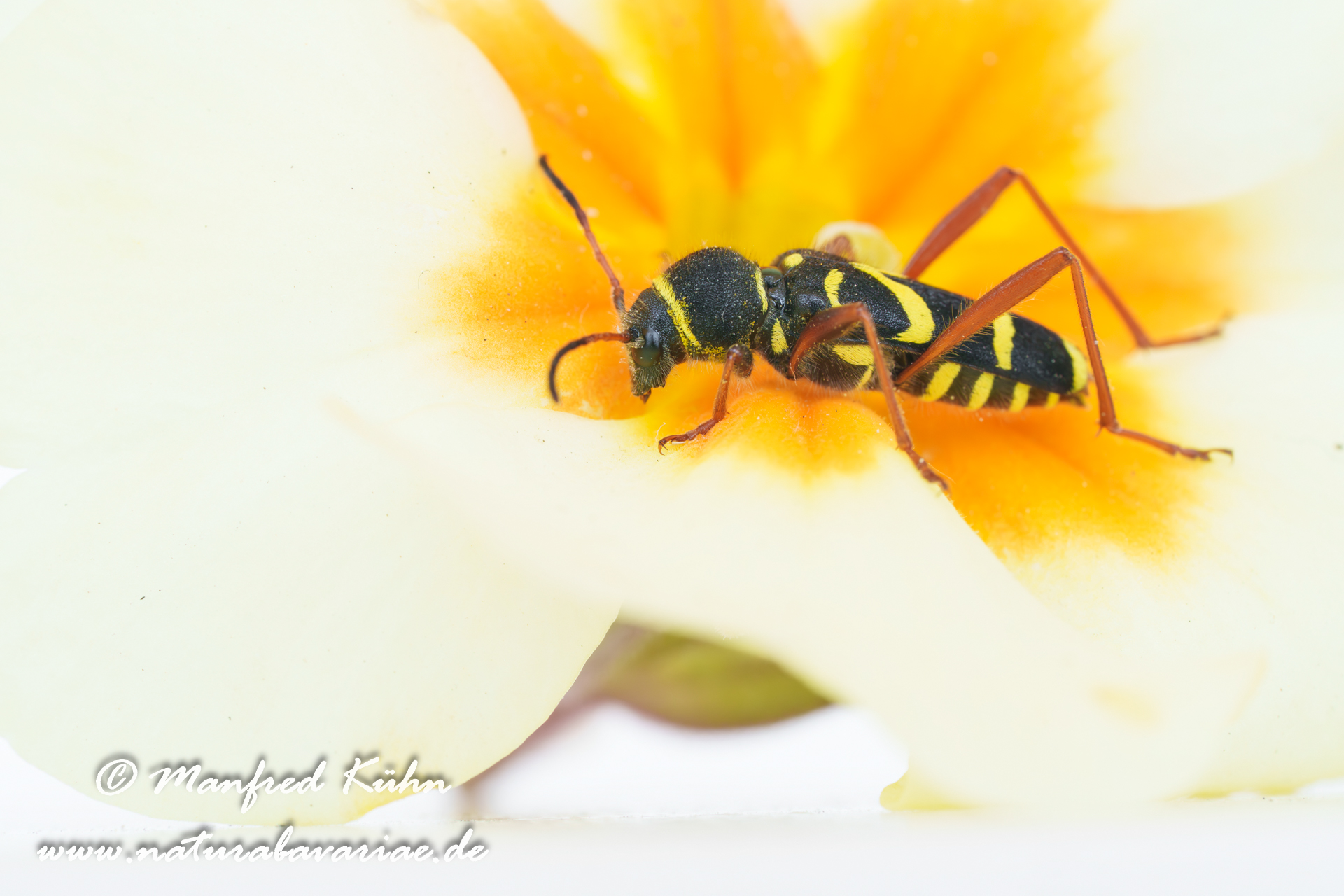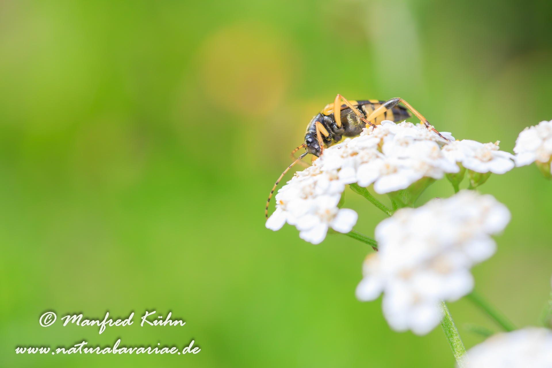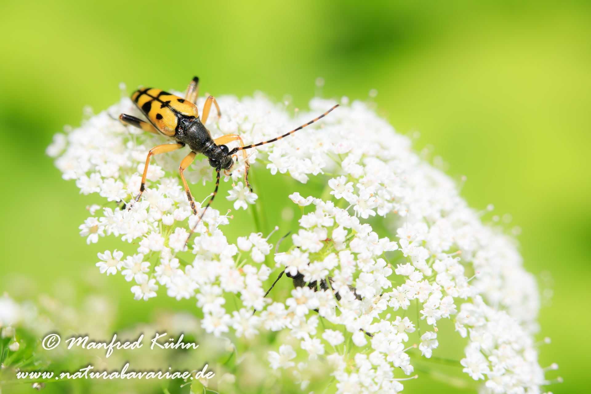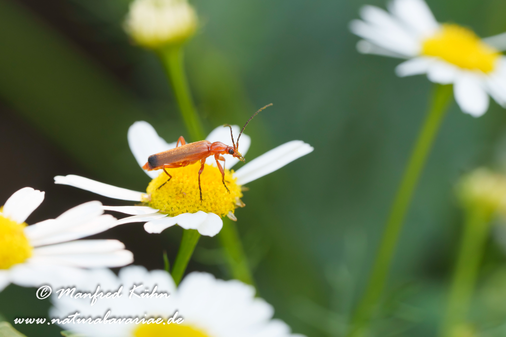 The red-brown longhorn beetle, is a species of beetles belonging to the family Cerambycidae. |Der Rothalsbock (Stictoleptura rubra, Syn.: Leptura rubra, Corymbia rubra, Aredolpona rubra), Männchen, auch Roter Halsbock oder Gemeiner Bockkäfer genannt, gehört zur Familie der Bockkäfer (Cerambycidae) und dort zur Unterfamilie der Schmalböcke (Lepturinae), Bayern