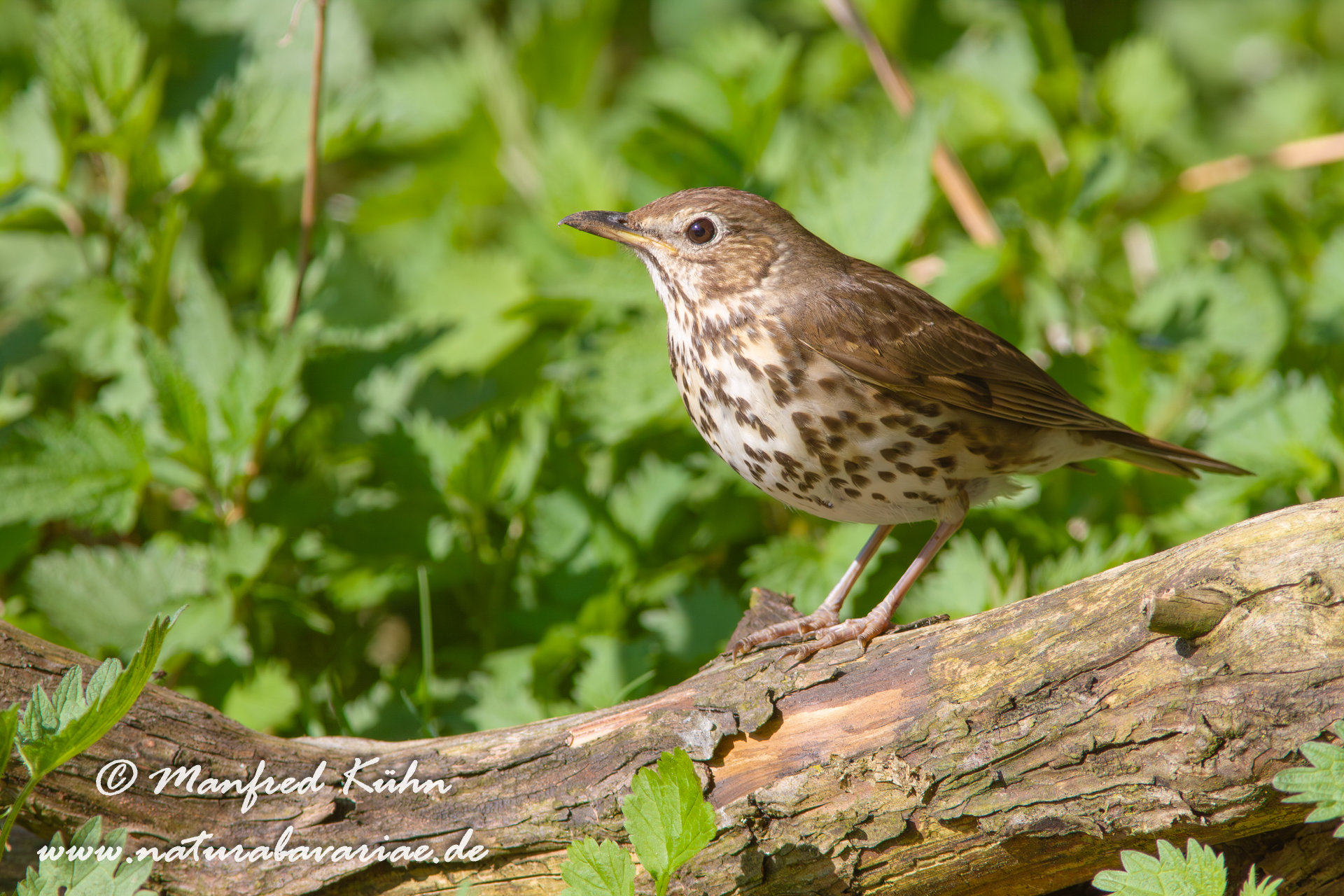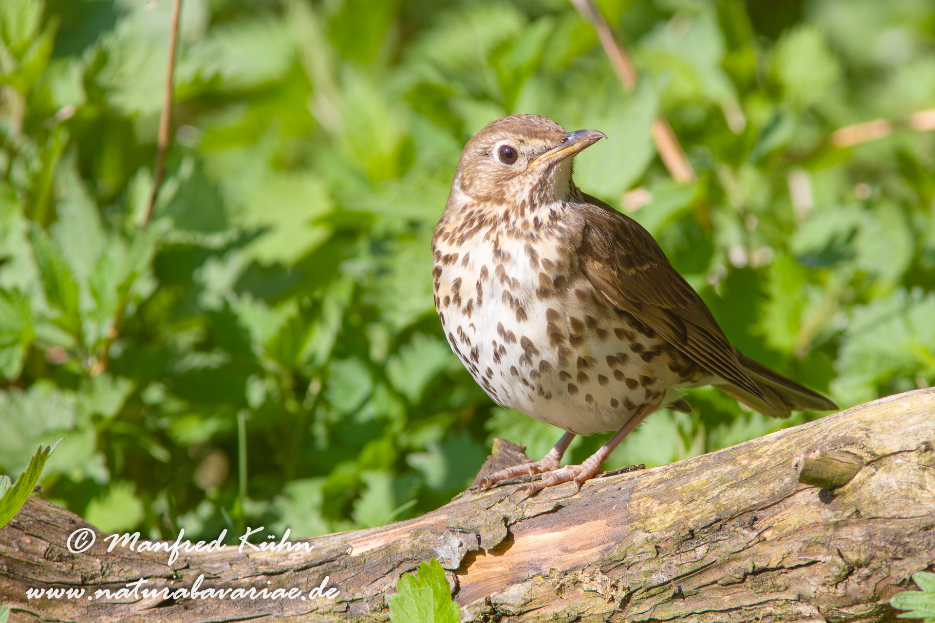 The song thrush |Die Singdrossel (Turdus philomelos) ist eine Vogelart, die zur Familie der Drosseln (Turdidae) und zur Ordnung der Sperlingsvögel (Passeriformes) gehört, Bretagne, Frankreich