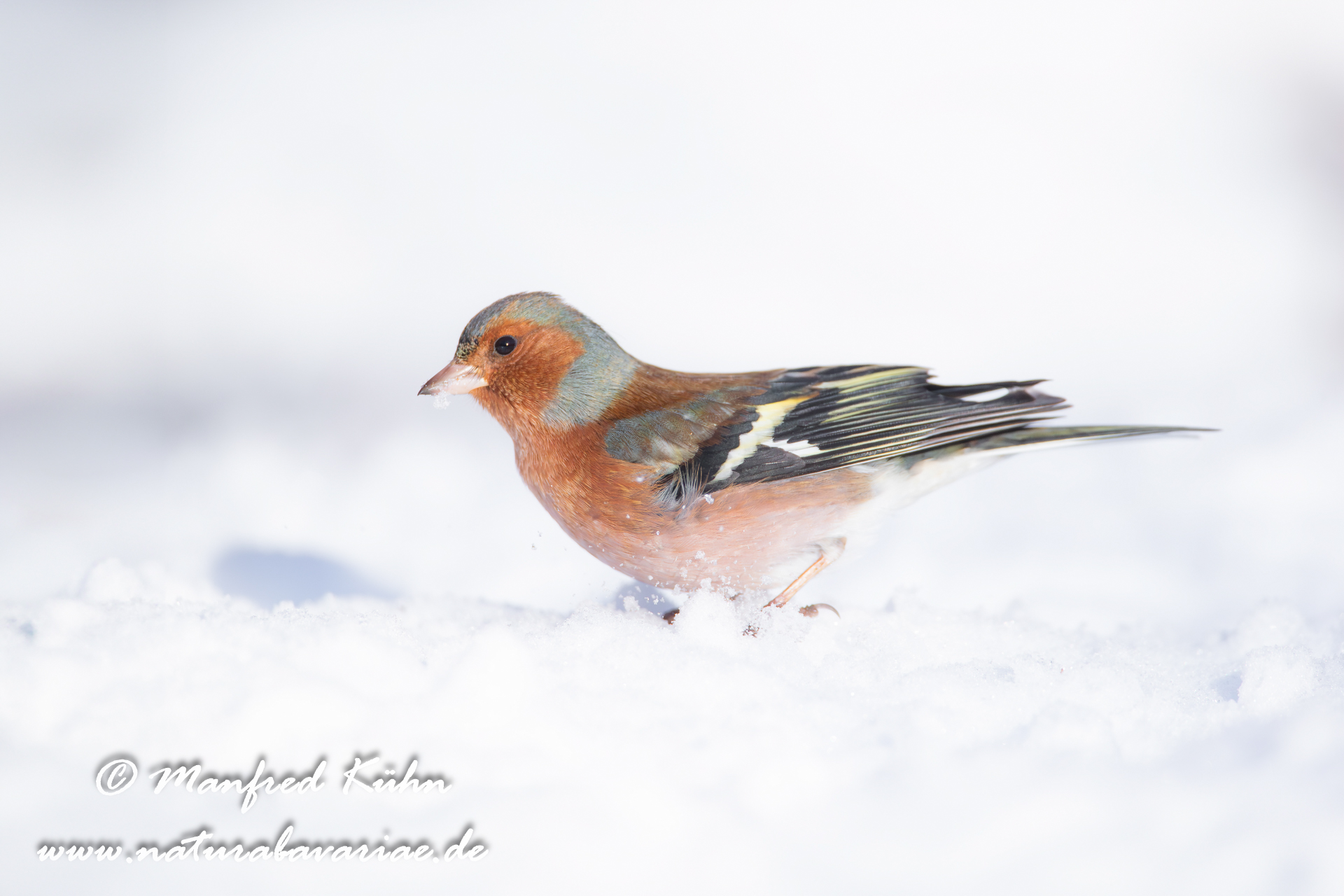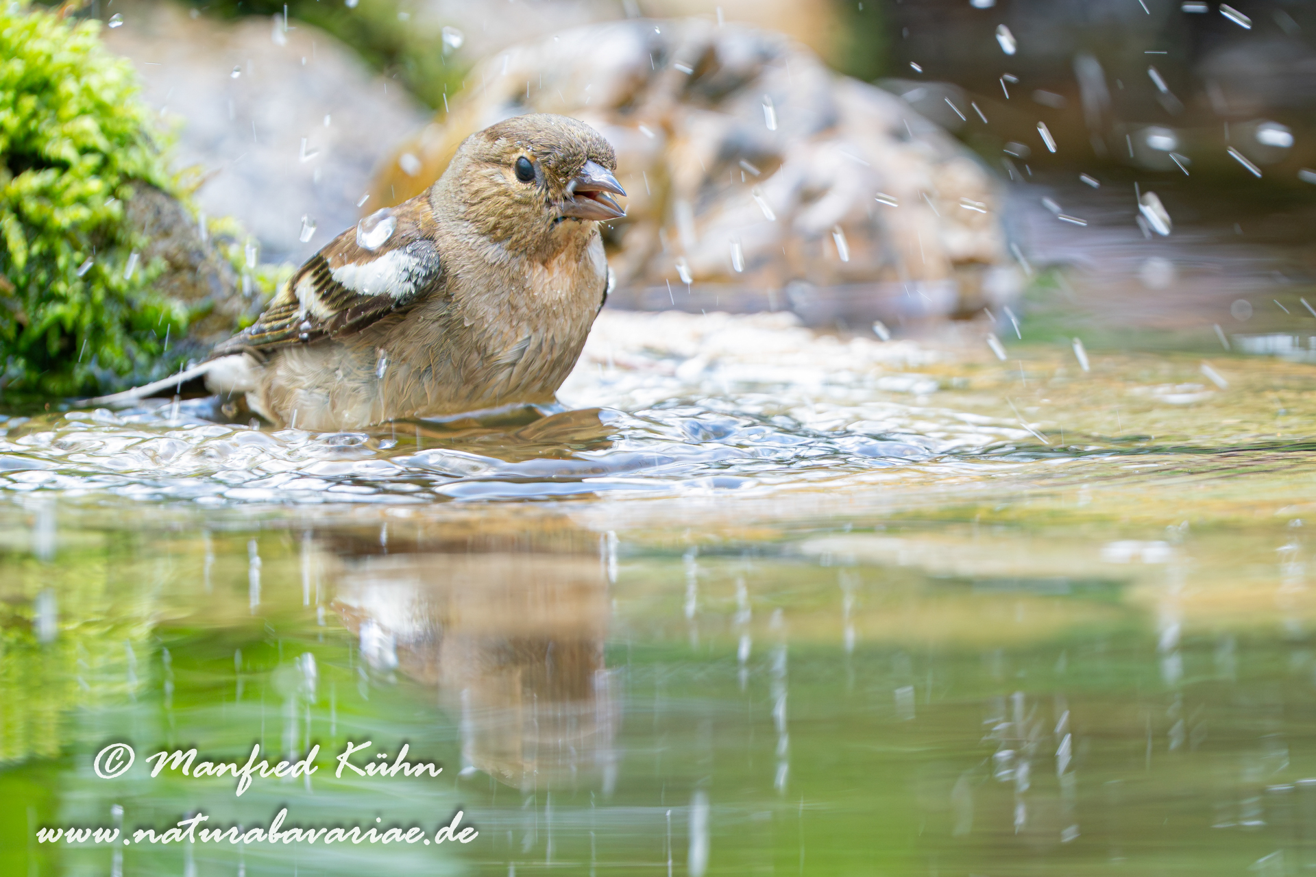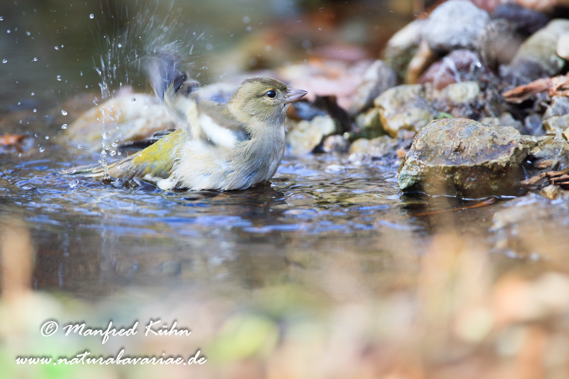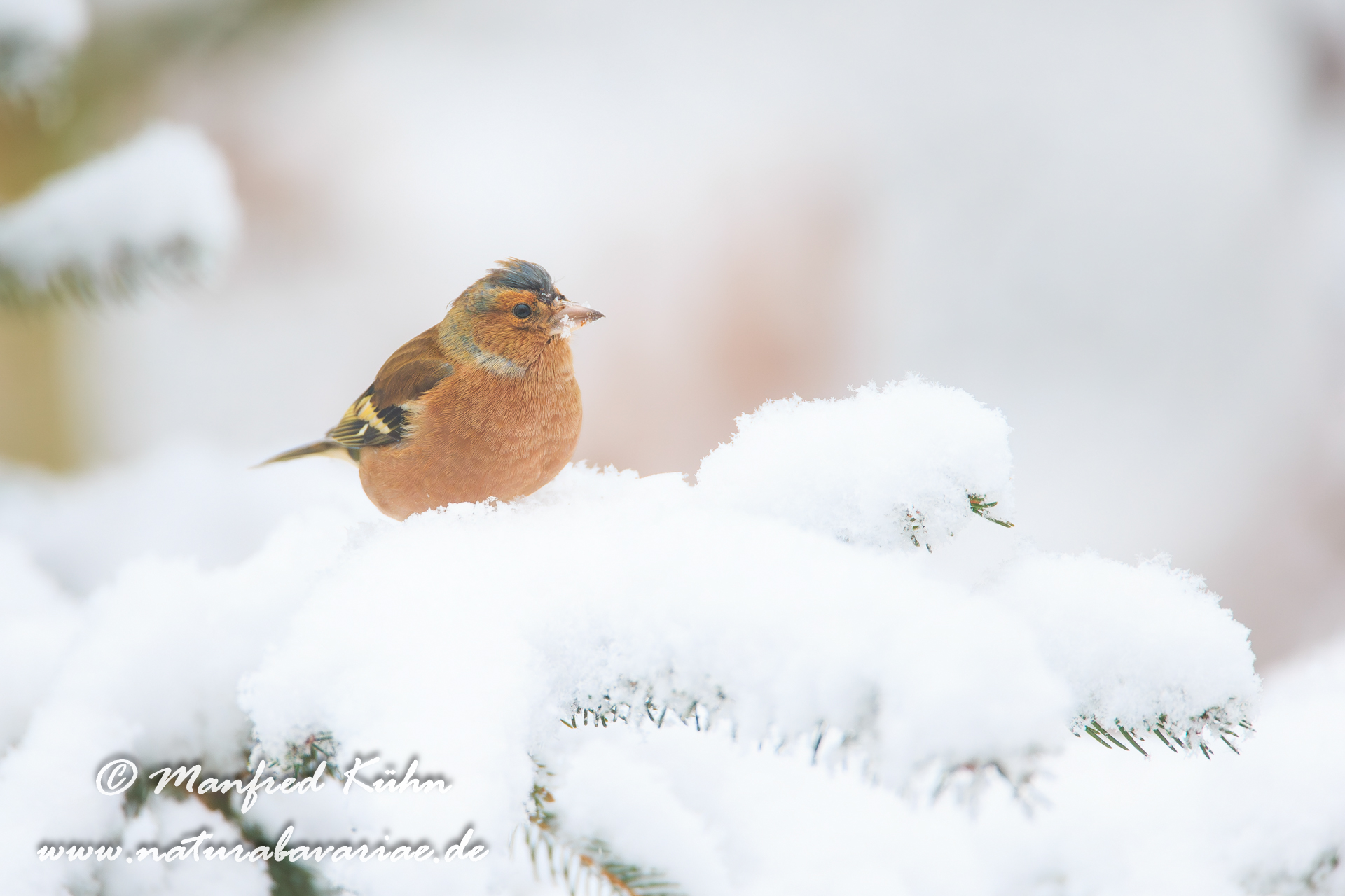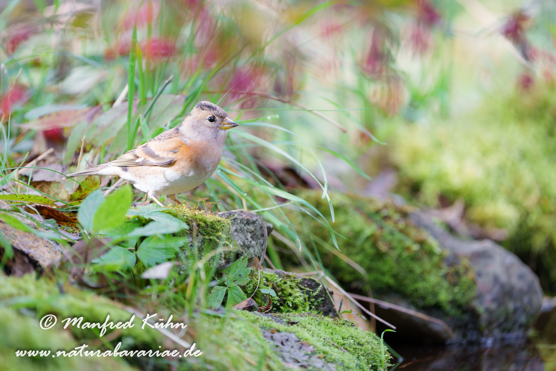 The common chaffinch (Fringilla coelebs), usually known simply as the chaffinch, is a common and widespread small passerine bird in the finch family, female, Bavaria |Der Buchfink (Fringilla coelebs) ist ein zur Familie der Finken (Fringillidae) gehöriger Singvogel, Weibchen, Bayern,