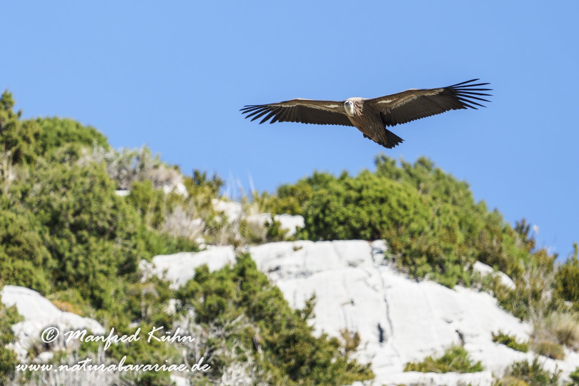 Entlang der Straße gilt es die Augen unbedingt offen zu halten. Denn überall besteht die Chance auf Samtkopf-Grasmücke (Curruca melanocephala; Syn.: Sylvia melanocephala) sowie Weißbartgrasmücke (Curruca cantillans; Syn: Sylvia cantillans), Mauer-Eidechsen und verschiedene Schmetterlinge zu treffen. Auch konnte ich Habichtsadler (Aquila fasciata, Syn.: Hieraaetus fasciatus), Rotmilan (Milvus milvus)- und Schwarzer Milan (Milvus migrans) und – extrem nahe und niedrig – Gänsegeier (Gyps fulvus) beobachten und auch sehr gut fotografieren. Dieser ist hier auch als Brutvogel heimisch und wird von Französischen Naturschutzorganisationen betreut und geschützt. Vor allem die immer stärker ausufernde wilde und teils unkontrollierte Kletterei in den zahllosen Felswänden wird zunehmend zum Problem für die Brutbereiche.