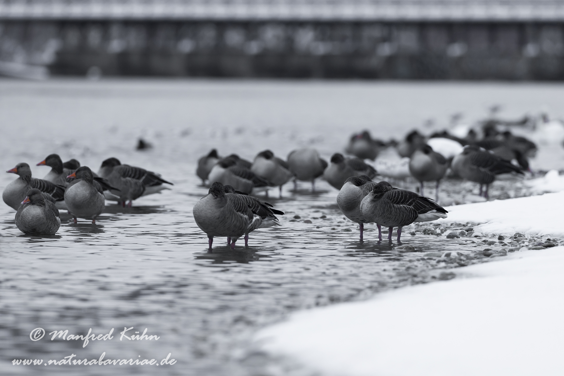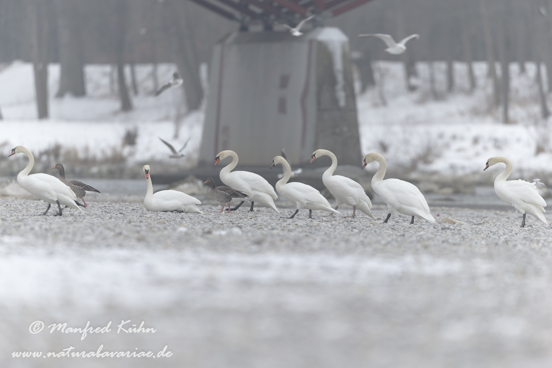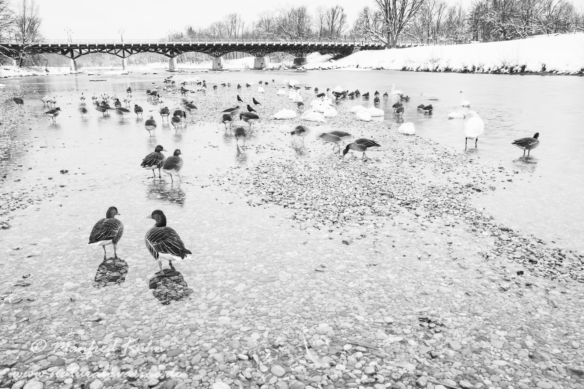 River Isar, different geese at morning |Isar, Moosburg, Bayern, Gänse im Morgennebel