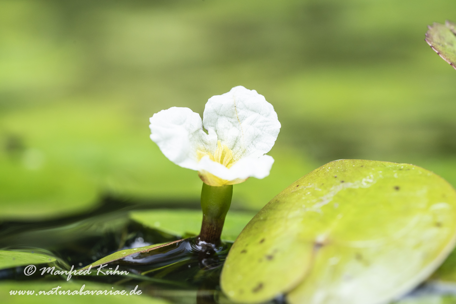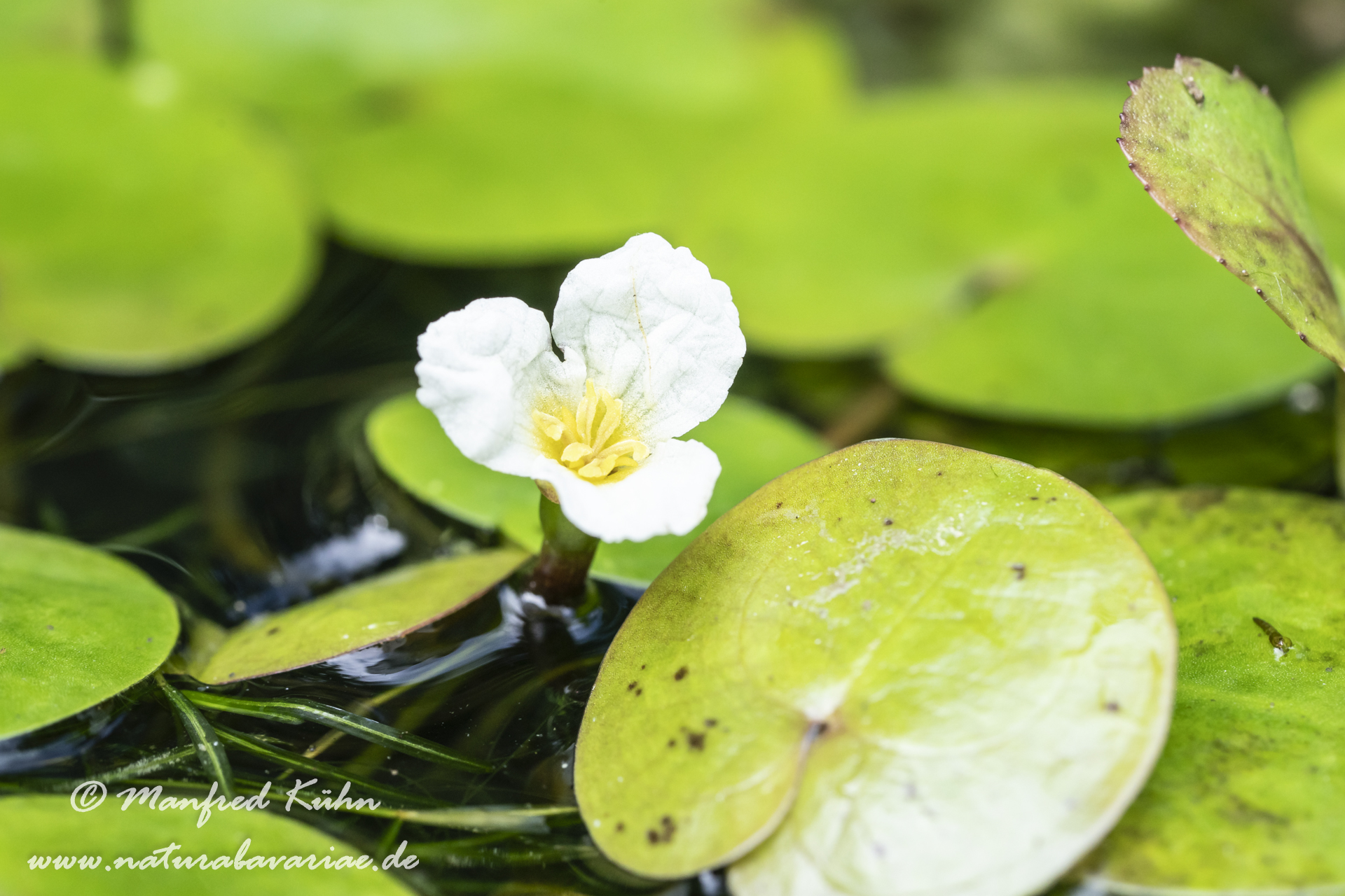 The common frogbit or European frog's-bit |Der Europäische Froschbiss (Hydrocharis morsus-ranae), meist nur als Froschbiss bezeichnet, ist eine Wasserpflanzenart aus der Familie der Froschbissgewächse (Hydrocharitaceae). Bayern