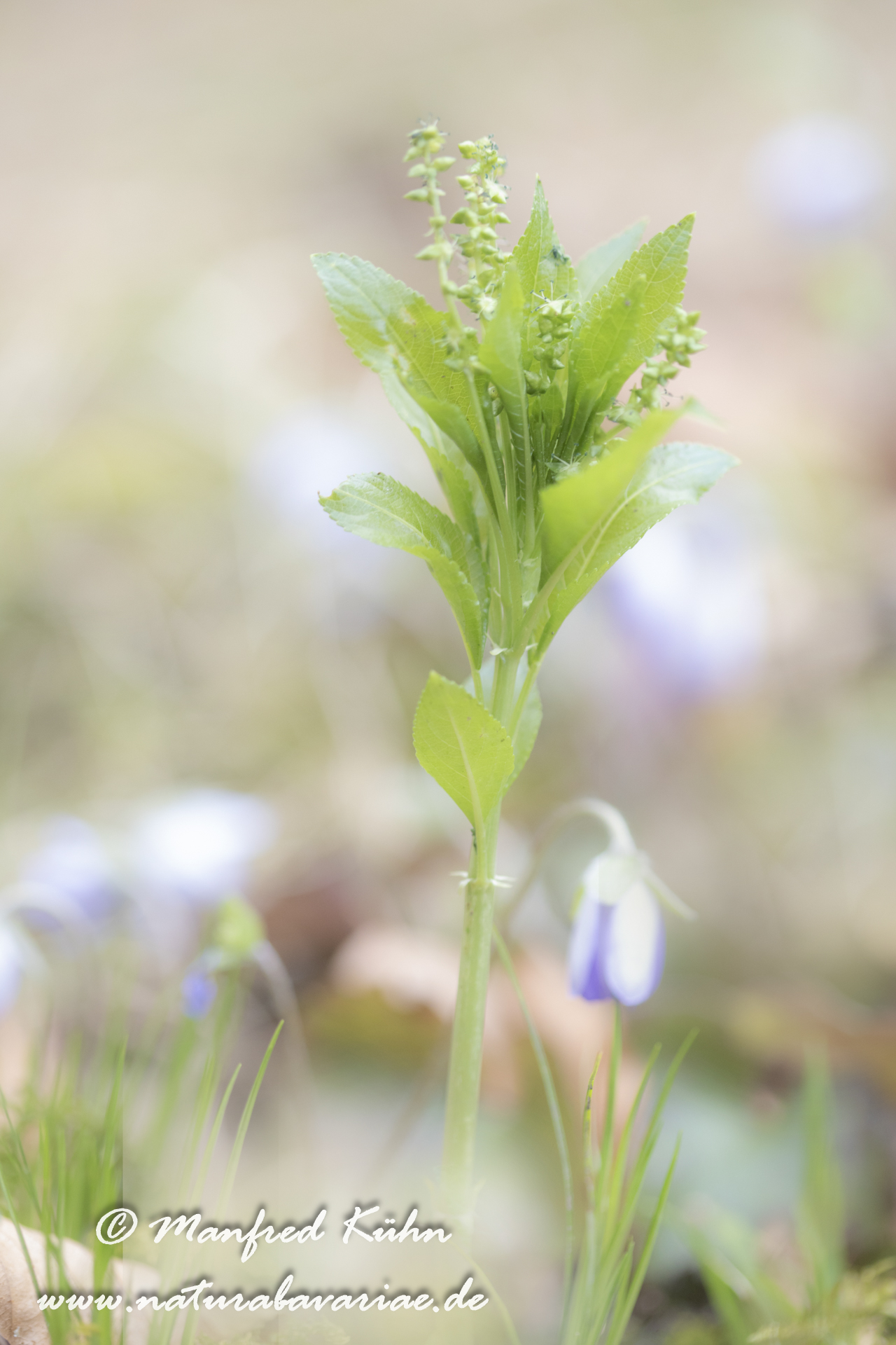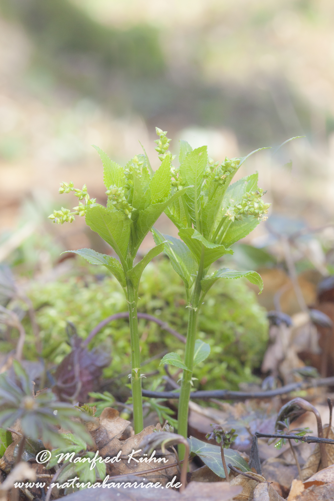(Mercurialis perennis), commonly known as dog's mercury, is a woodland plant found in much of Europe as well as in Algeria, Iran, Turkey, and the Caucasus, but almost absent from Ireland, Orkney and Shetland, Bavaria, Germany |Das Wald-Bingelkraut (Mercurialis perennis), auch Wildhanf genannt, gehört zur Familie der Wolfsmilchgewächse (Euphorbiaceae). Der Gattungsname Mercurialis leitet sich ab vom Gott Merkur, der angeblich die Heilkräfte des Bingelkrauts entdeckt haben soll, Bayern, Deutschland