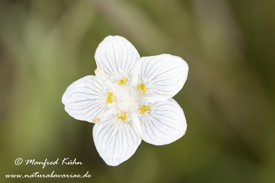 The Marsh Grass-of-Parnassus, Northern Grass-of-Parnassus, or just Grass-of-Parnassus, and Bog-star, is a species of the genus Parnassia, Bavaria, Germany |Das Sumpf-Herzblatt (Parnassia palustris), auch Studentenröschen genannt, ist eine Pflanzenart der Gattung Herzblatt (Parnassia) und in Mitteleuropa der einzige Vertreter der Unterfamilie der Herzblattgewächse (Parnassioideae), Bayern